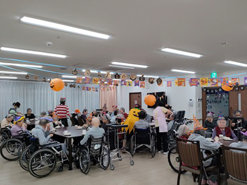 10月30日 夏祭り以来の食堂に集まってハロウィンレクを行いました